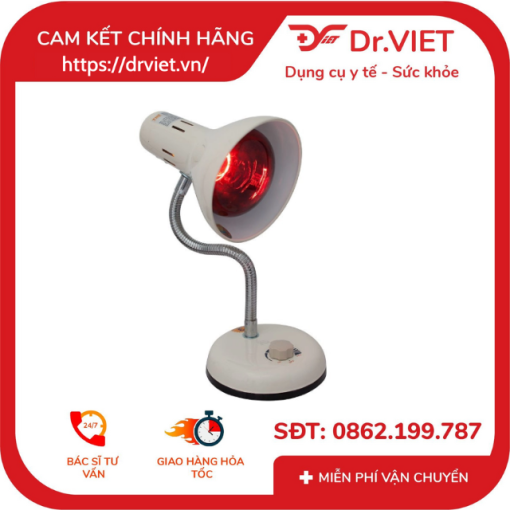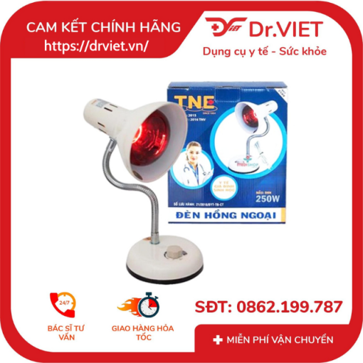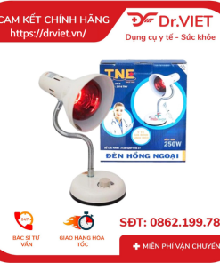 Chân đèn hồng ngoại chiết áp TNE D-Lamp Dimmer 250W – Việt NamĐèn hồng ngoại chuyên sử dụng trong các trường hợp viêm đa khớp, chiếu vàng da, đau nhứt toàn thân, viêm da, mụn… Đèn hồng ngoại sử dụng bước sóng 940nm qua hệ thống lọc màu cho ra dải quang phổ đơn sắc đó là màu đỏ dùng để trị một số bệnh về viên khớp, gân, hủy protein và chống viêm nhiễm do vi khuẩn môi trường.Đèn hồng ngoại TNE được sản xuất trong nước và sản phẩm này chuyên phục vụ trong ngành y tế với chất lượng cao bảo hành 3 năm không bảo hành bóng đèn. Tuy nhiên nếu sử dụng đúng phương pháp thì bóng có thể sử dụng lâu từ 2 đến 4 năm.Nguyên lý hoạt động của đèn là sử dụng phương pháp nhiệt đơn sắc dùng để kích thích chuyển hóa và tăng cường sự trao đổi chất cũng như chống lại một số nấm và vi khuẩn có hại cho da và protein của cơ thể người. Tăng cường lưu thông máu, chống lại sự tắt một số mạch máu gây đau nhứt cho cơ thể.Thông số kỹ thuậtModel: D-Lamp Dimmer 250Nhãn hiệu: TNE (Việt Nam)Sản phẩm chưa bao gồm bóng đèn hồng ngoại. (Qúy khách có thể mua thêm bóng đèn hồng ngoại riêng)Vật liệu: Kim loại.Chiều cao thân đèn: 45cm.Cổ đèn linh hoạt tạo góc xoay lên đến 360o.Công suất: 100W – 150W – 250W (tùy theo bóng đèn lắp đặt).Khoảng cách đèn cá nhân: 30 – 80cm.Thời gian rọi: 15 đến 30 phút.