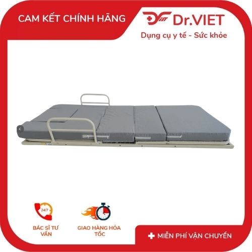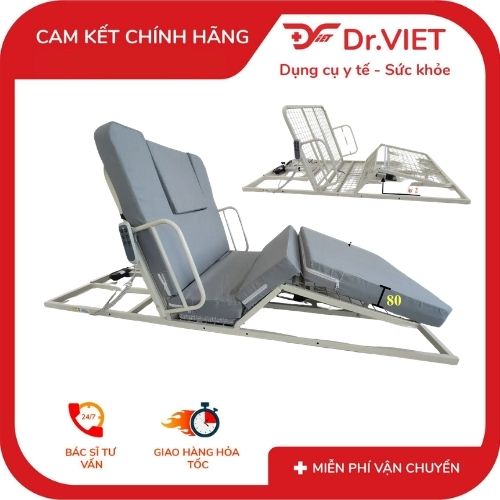 Sản phẩm được trang bị 2 mô tơ riêng biệt cho phần lưng và phần chân, giúp vận hành êm ái, ổn định và bền bỉ theo thời gian. Khung đệm chắc chắn, chịu lực tốt, kết hợp cùng lớp đệm êm ái, thoáng khí mang lại cảm giác dễ chịu khi nằm lâu. Ngoài ra, thiết kế còn tích hợp tay vịn hỗ trợ người dùng khi cần ngồi dậy, cùng với lỗ khoét tiện lợi giúp việc chăm sóc cá nhân cho người bệnh trở nên dễ dàng hơn.