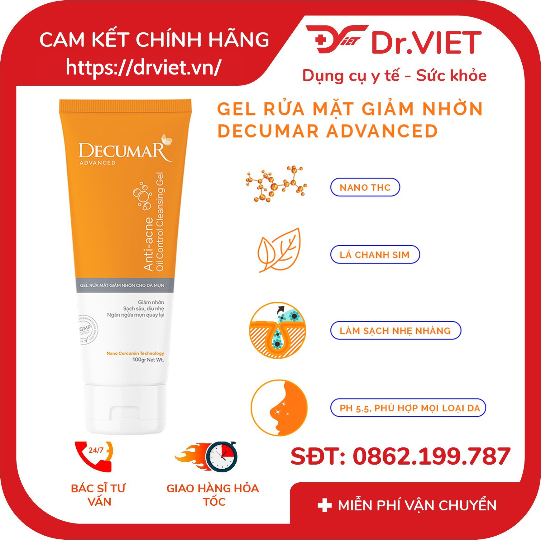 ĐIỂM ĐẶC BIỆT Gel rửa mặt giảm nhờn cho da mụn Decumar Advanced 100gr