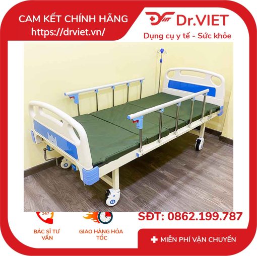 Khung giường được làm từ thép sơn tĩnh điện, rất cứng cáp tải trọng lên tới 300kg, giường có kích thước ngang 1m dài 2m, đủ rộng cho bệnh nhân năm, khung giường chịu tải trọng lên tới 300kg nên người nhà có thể ngồi lên chăm sóc cho bệnh nhân hơn.
