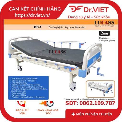 Giới thiệu chi tiết Giường Bệnh Nhân 1 Tay Quay Lucass GB-1