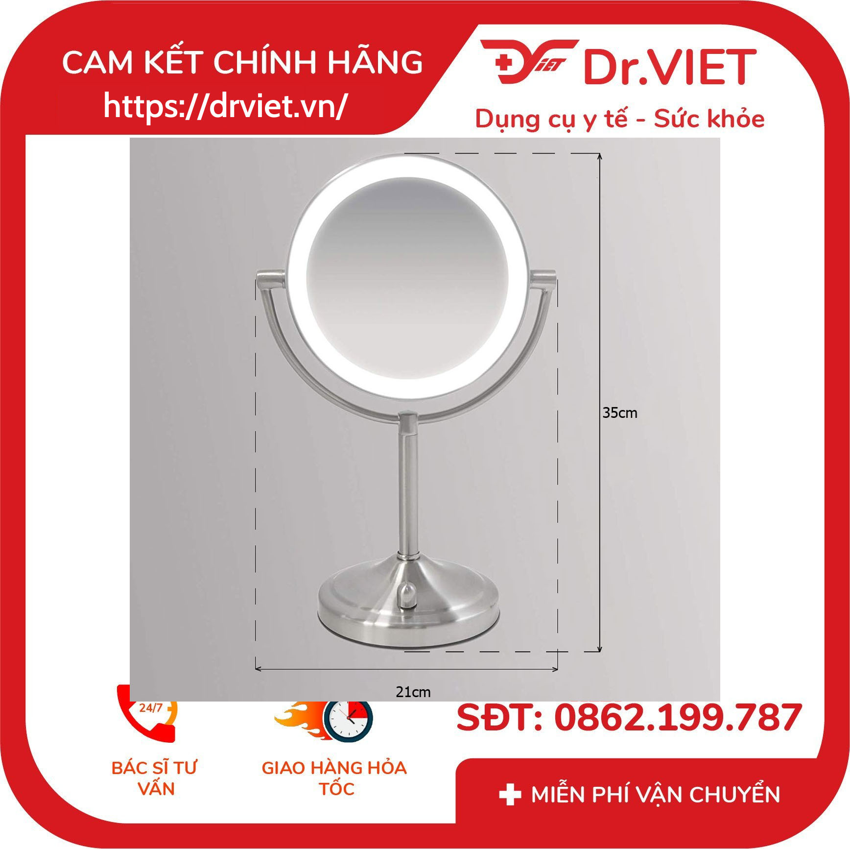 Thông số kỹ thuật Gương trang điểm 2 mặt kèm đèn Led HoMedics MIR-8150-EU