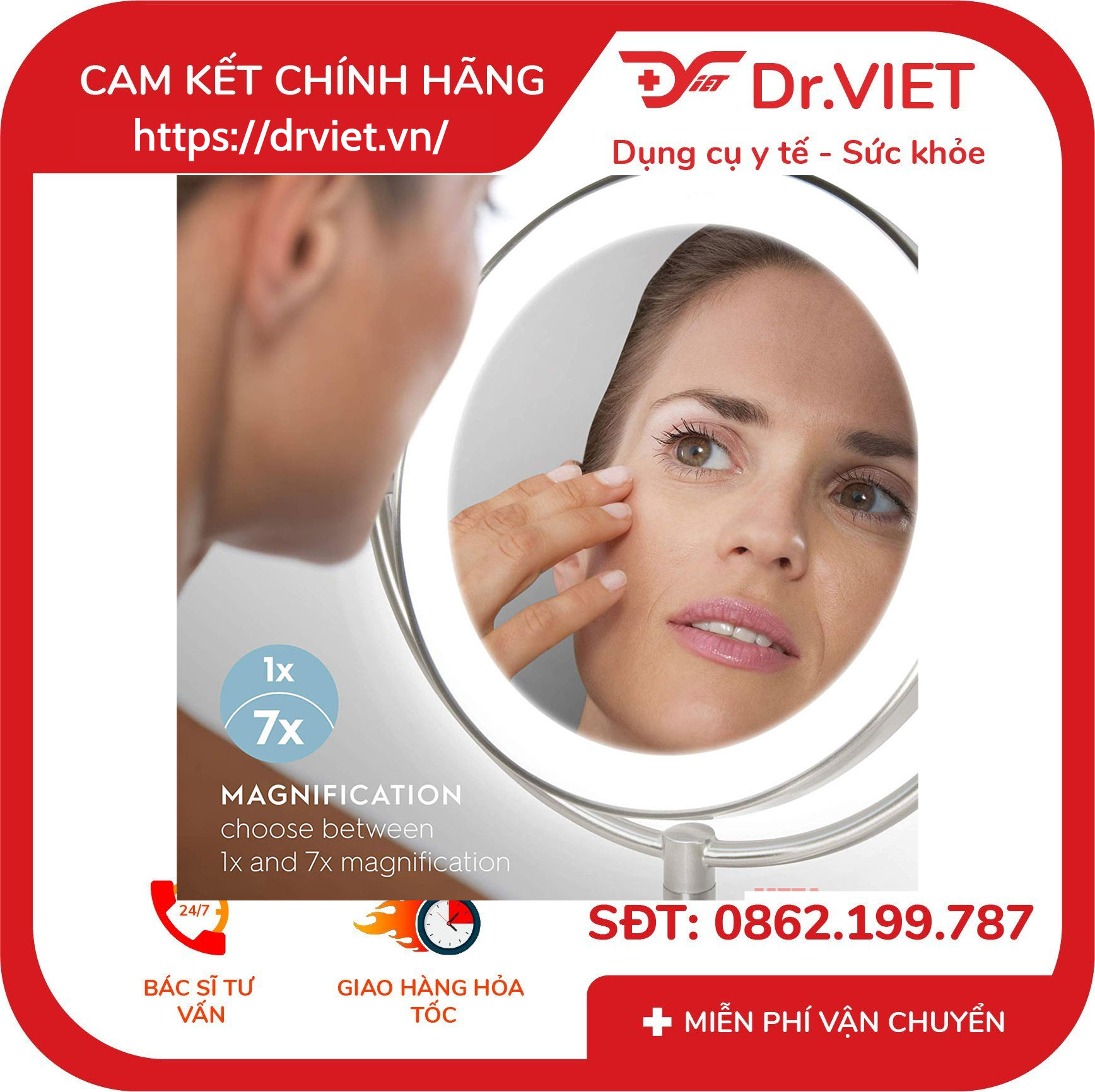 Thông tin sản phẩm Gương trang điểm 2 mặt kèm đèn Led HoMedics MIR-8150-EU
