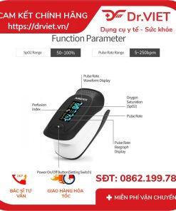 Thiết bị được dùng để đo nồng độ oxy trong máu (SpO₂) và nhịp tim (PR) bằng phương pháp cảm biến quang học thông qua đầu ngón tay.