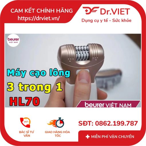 - Máy triệt lông 3 trong 1 Beurer HL70 Có chức năng cạo râu và đánh tẩy các vùng da, tế bào chết.