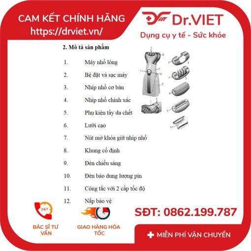 - Số lượng lá cạo: Đầu tẩy da chết, Nhíp, Dao cạo (3)