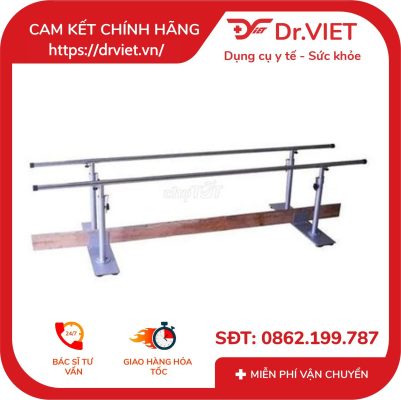 Sản phẩm Thanh song song tập đi Đức Cường DVC17 có Đế trụ bằng gang, tay cầm bằng inox. Có thanh gỗ chắn giữa rẽ 2 chân.
