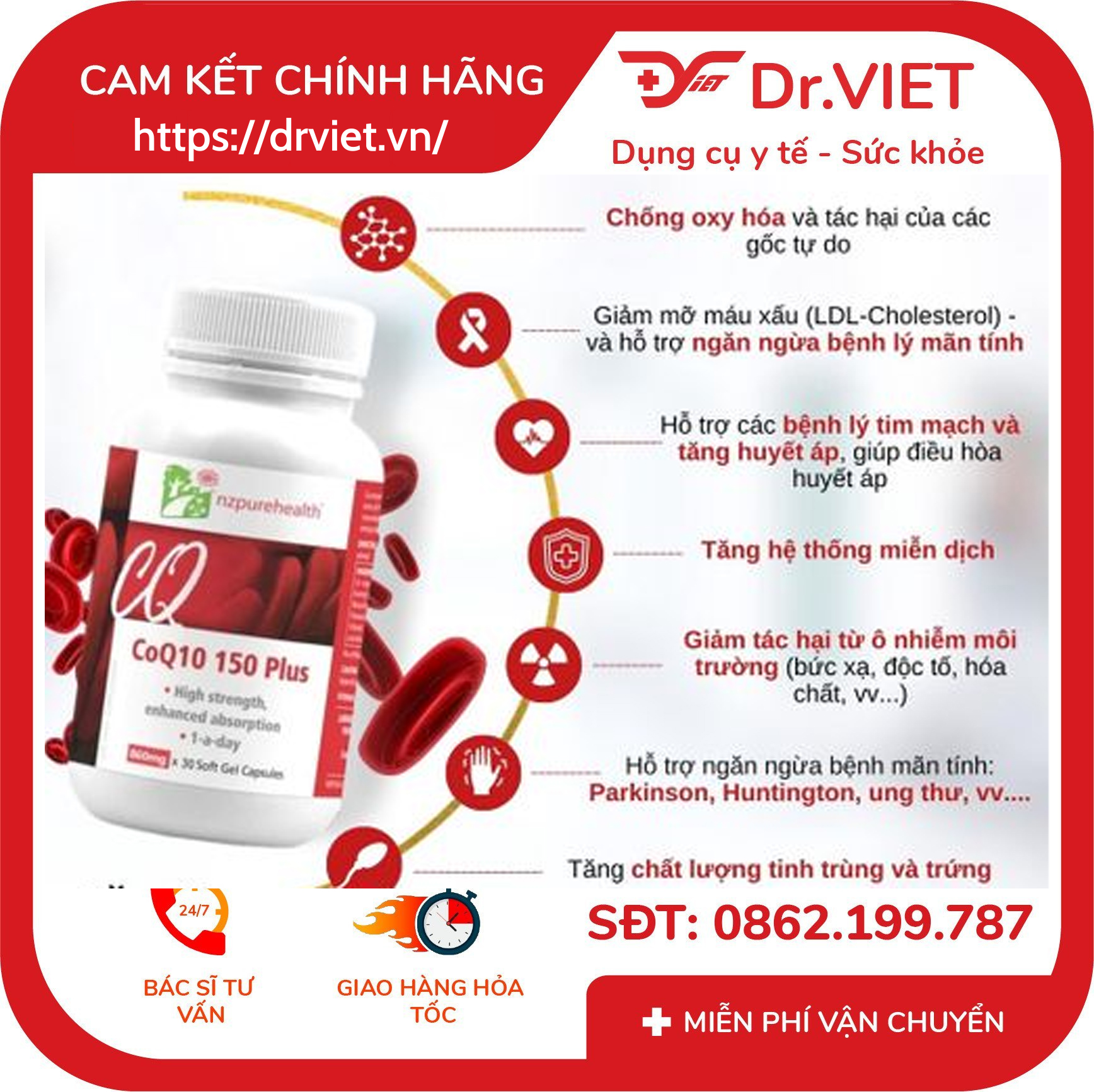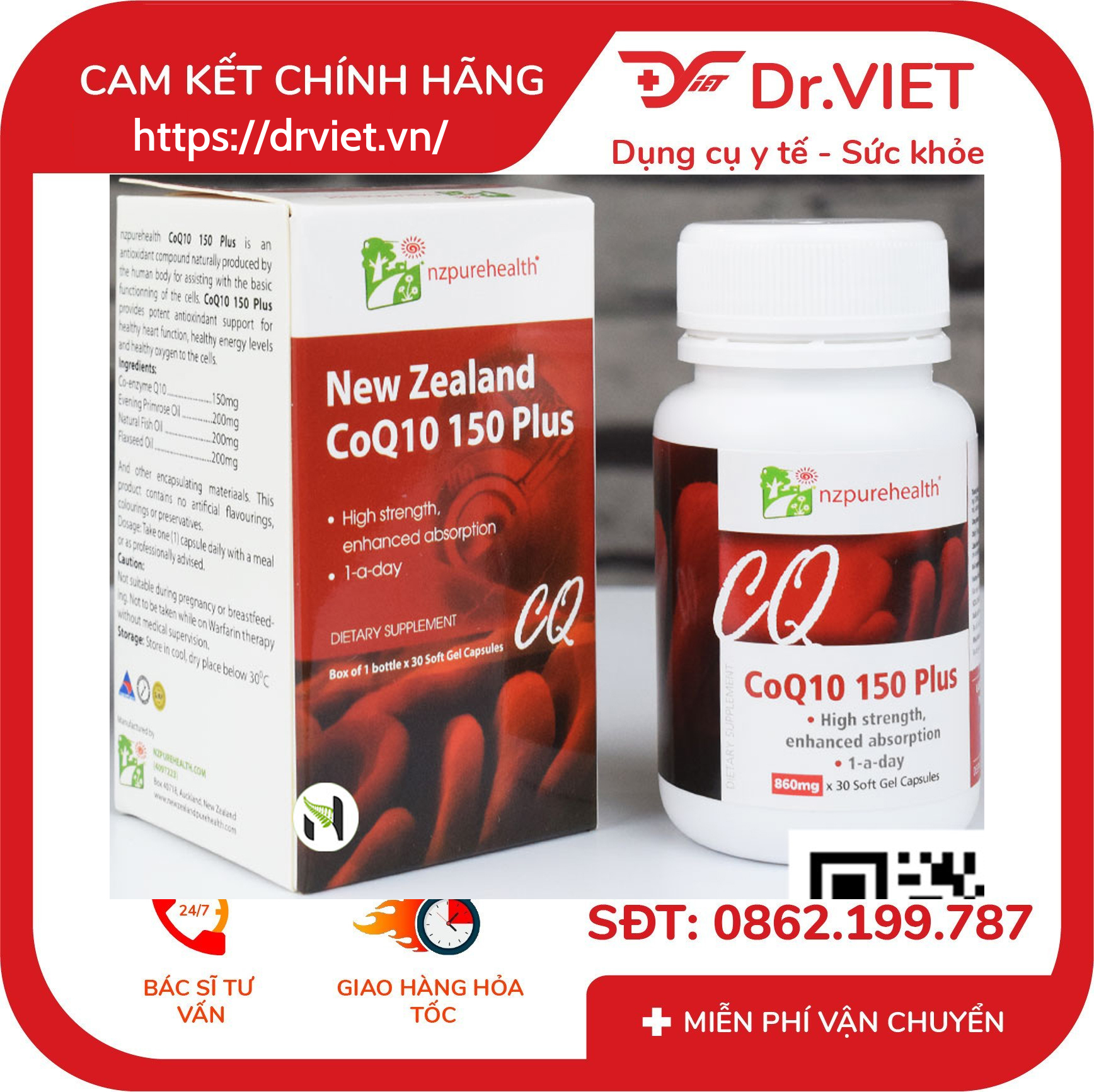 Viên uống bảo vệ tim mạch NZPurehealth CoQ10 150 Plus có chứa Co-enzyme Q10 giúp duy trì hệ tim mạch khỏe mạnh, tuần hoàn ổn định lâu dài, tăng cường máu tới cơ tim, phòng ngừa và làm giảm các bệnh tim mạch như đau thắt ngực, cao huyết áp, viêm cơ tim, suy tim,…