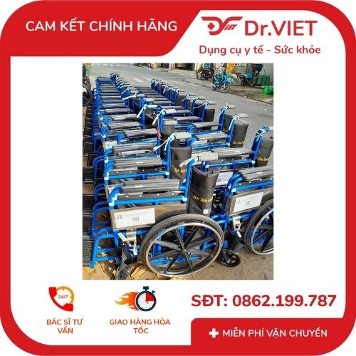Xe lăn tay sắt STD PKLN01 + Gấp gọn, khung sơn tĩnh điện, bánh đặc, nệm simili, 100x67x95cm